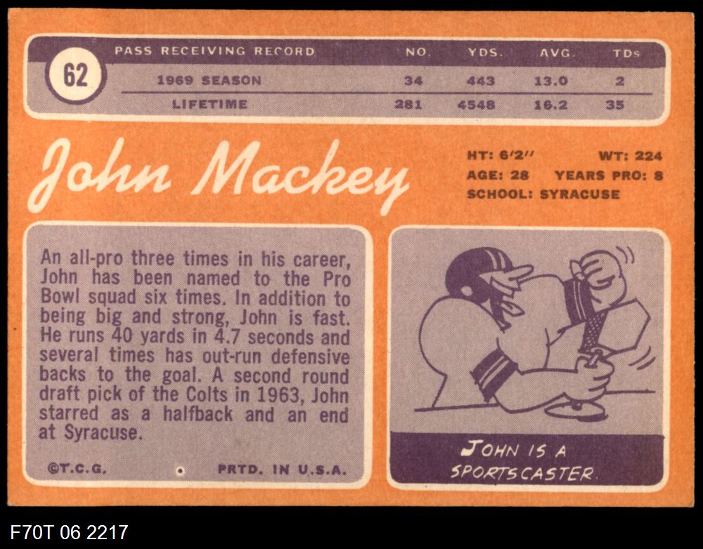 | 1970 Topps #62 John Mackey | 5 - EX | Front | Back |