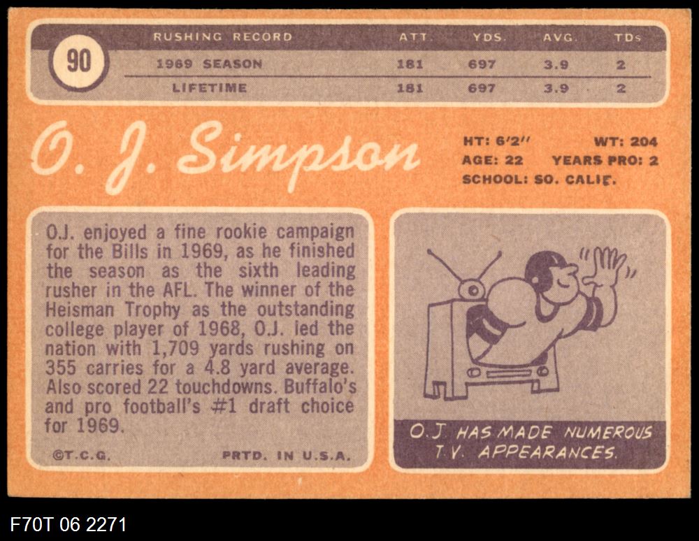 | 1970 Topps #90 O.J. Simpson | 5 - EX | Front | Back |