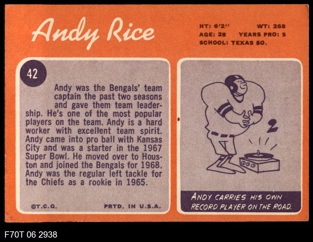 | 1970 Topps #42 Andy Rice | 4 - VG/EX | Front | Back |