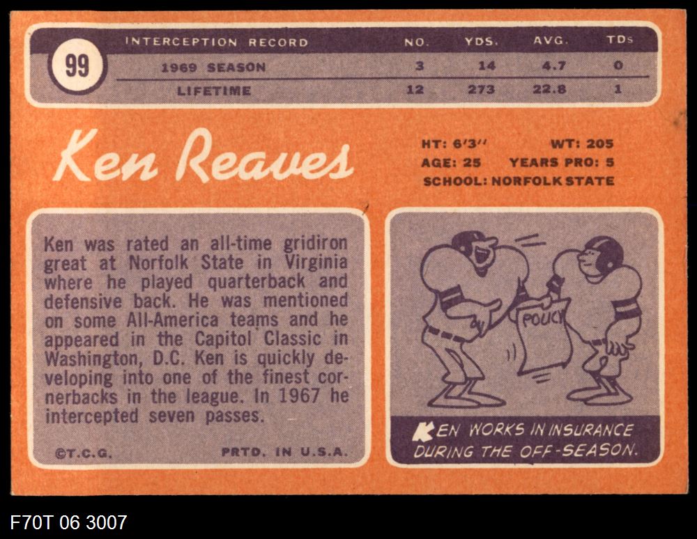 | 1970 Topps #99 Ken Reaves | 4 - VG/EX | Front | Back |