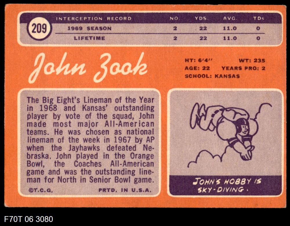 | 1970 Topps #209 John Zook | 4 - VG/EX | Front | Back |
