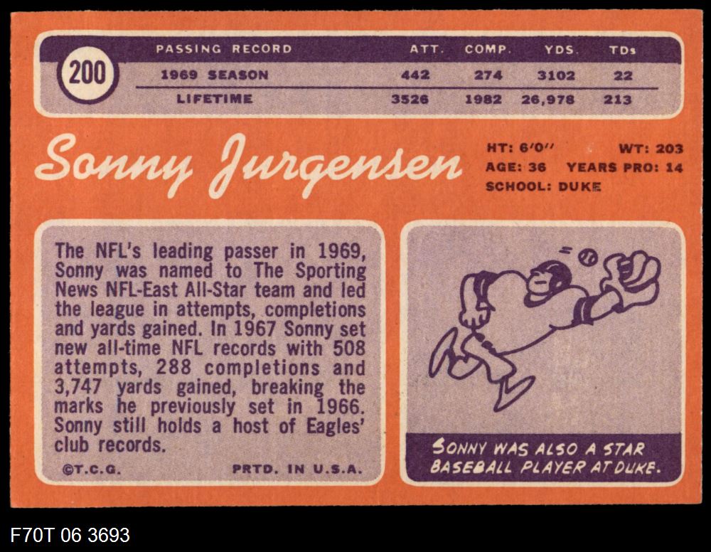 | 1970 Topps #200 Sonny Jurgensen | 5.5 - EX+ | Front | Back |
