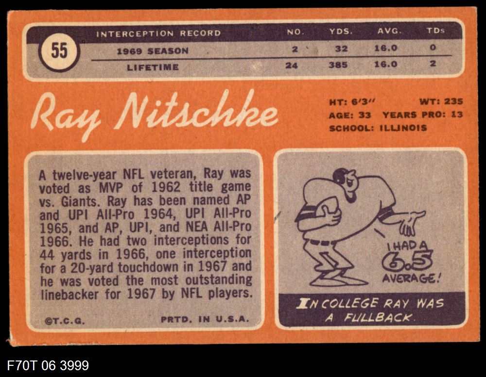 | 1970 Topps #55 Ray Nitschke | 4 - VG/EX | Front | Back |