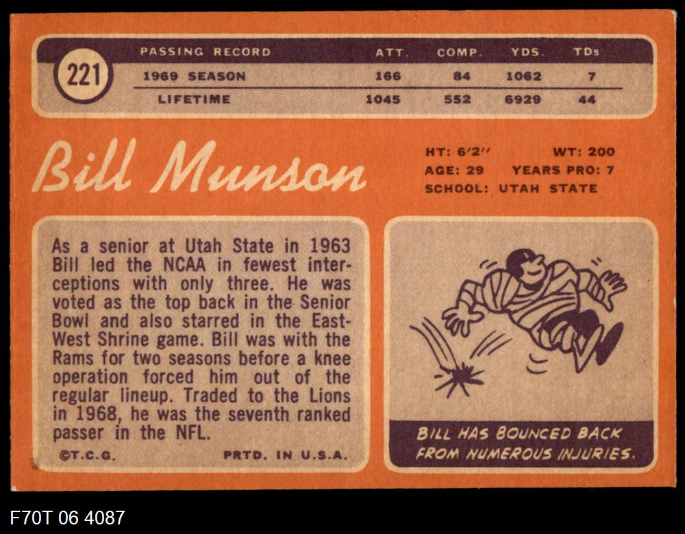 | 1970 Topps #221 Bill Munson | 5 - EX | Front | Back |