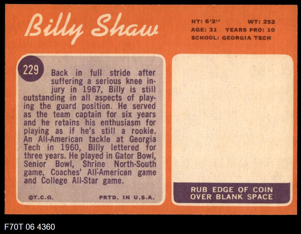| 1970 Topps #229 Billy Shaw | 5 - EX | Front | Back |