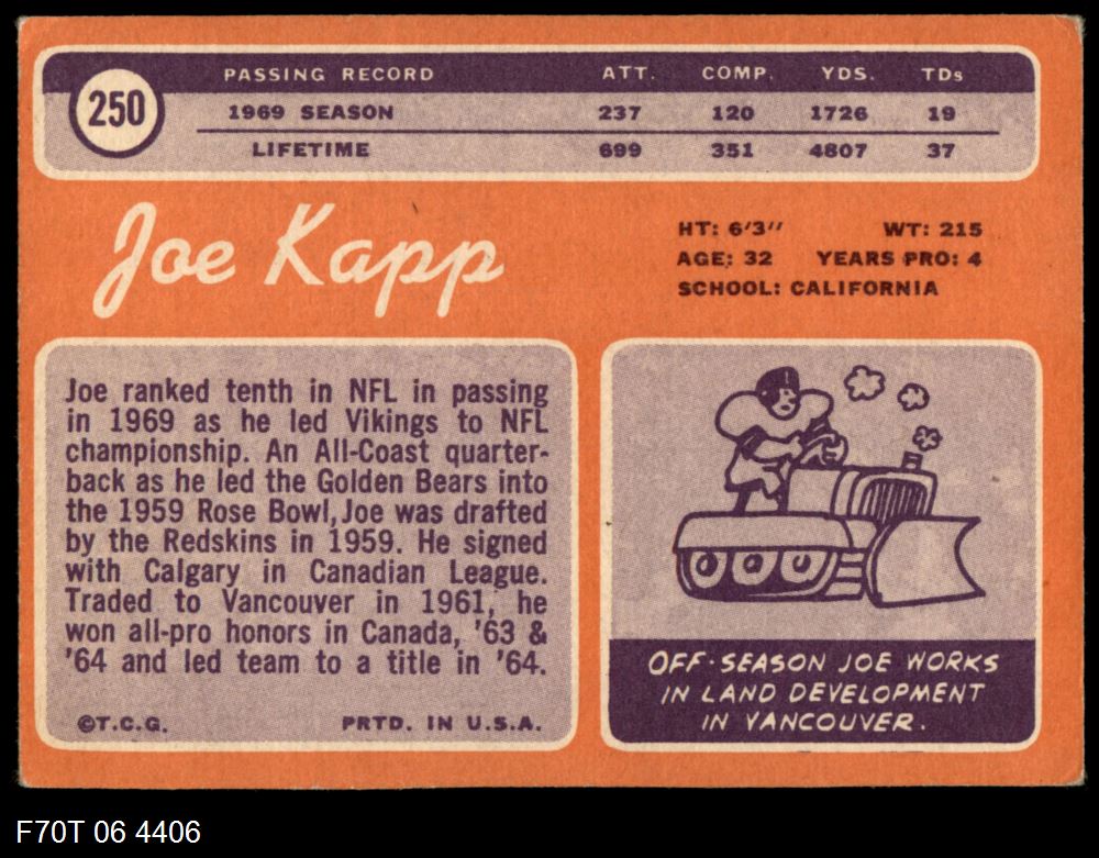 | 1970 Topps #250 Joe Kapp | 3 - VG | Front | Back |