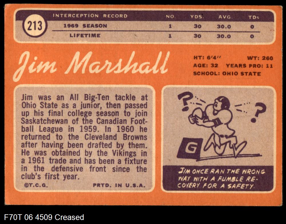 | 1970 Topps #213 Jim Marshall | 3 - VG | Front | Back |