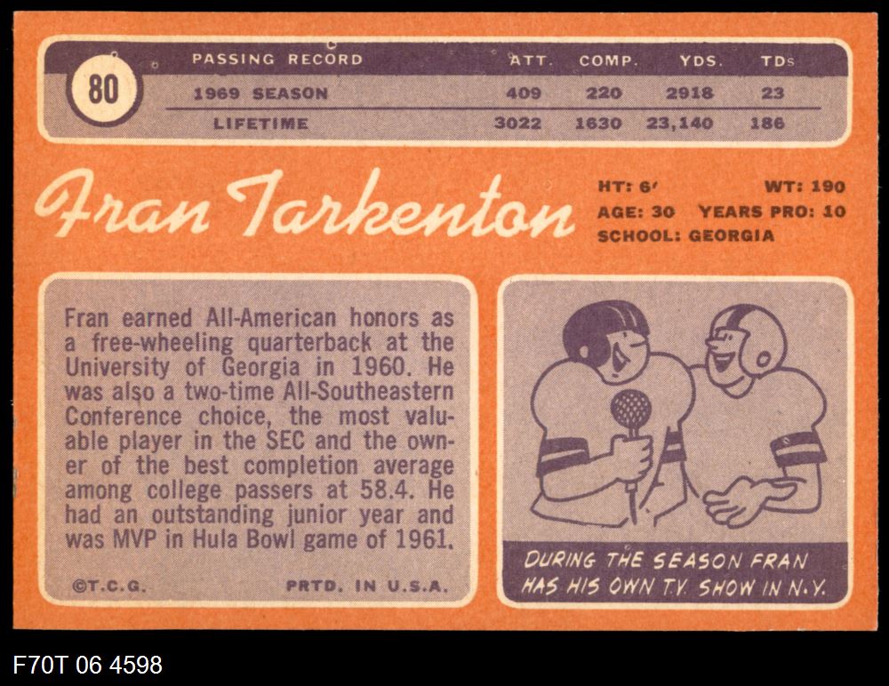 | 1970 Topps #80 Fran Tarkenton | 5 - EX | Front | Back |