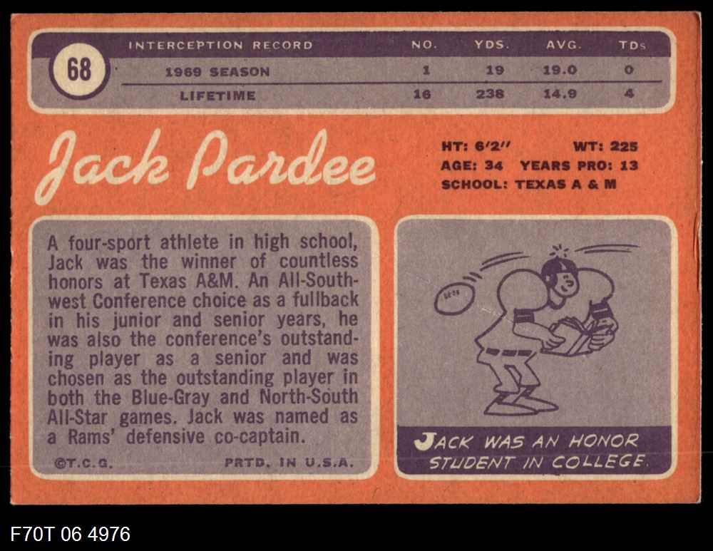 | 1970 Topps #68 Jack Pardee | 4 - VG/EX | Front | Back |