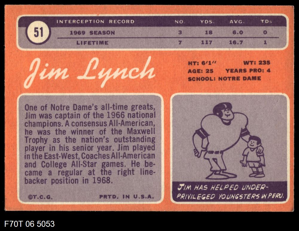| 1970 Topps #51 Jim Lynch | 3 - VG | Front | Back |