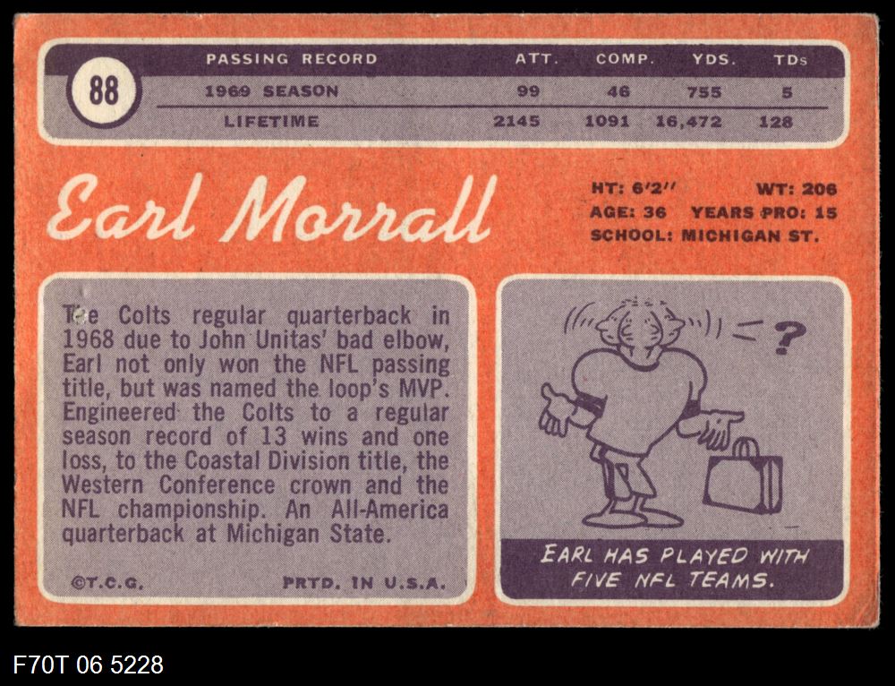 | 1970 Topps #88 Earl Morrall | 3 - VG | Front | Back |