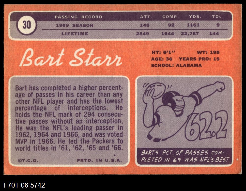 | 1970 Topps #30 Bart Starr | 3 - VG | Front | Back |