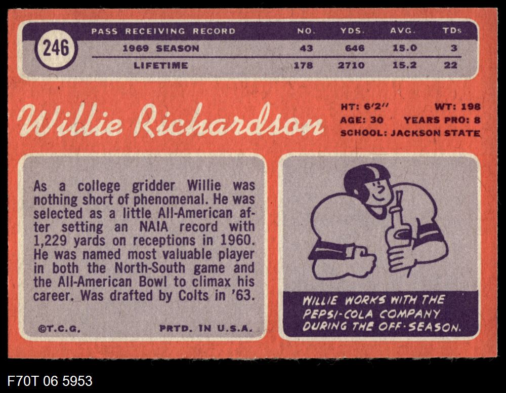 | 1970 Topps #246 Willie Richardson | 5 - EX | Front | Back |