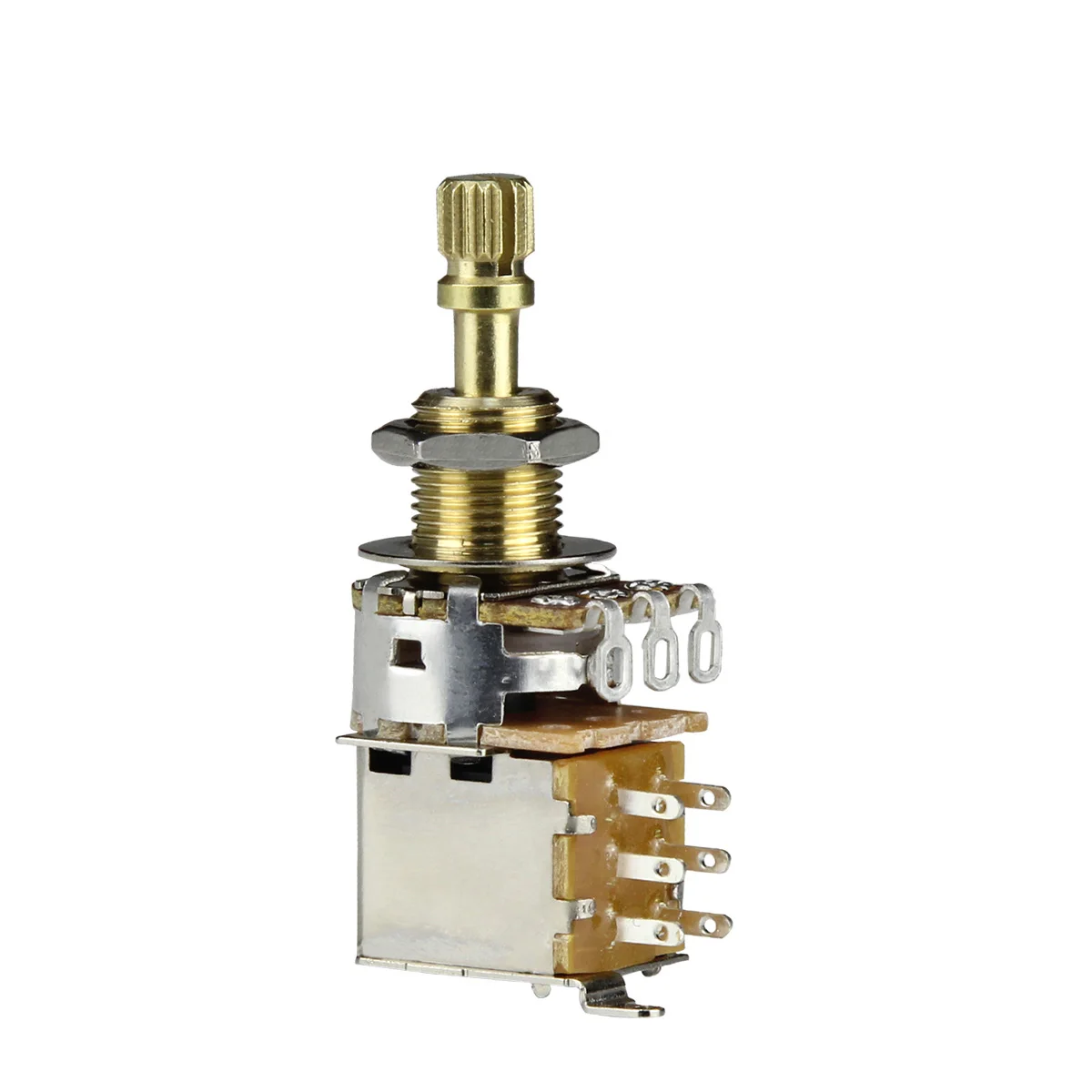 Push & Push potentiometer,one downward touch does it all,no clutching and fumbling forever,there is no need to pull anymore, just Push & Push and play it, so much easier to use than a push/pull pot.