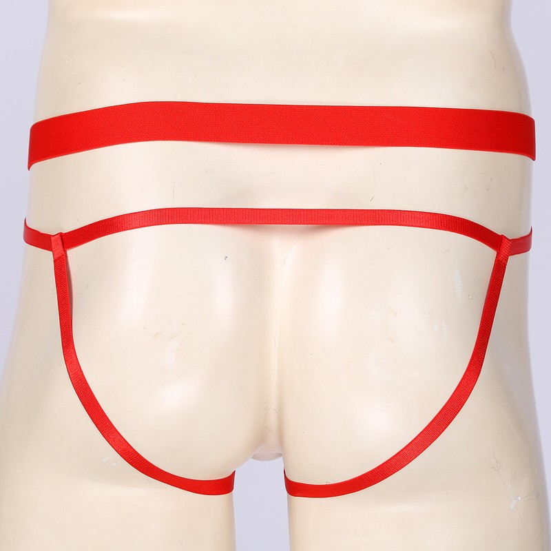 Men Crotchless Strappy Thongs O Ring Bead Decor G-string Low Rise Elastic Waistband T-back Underwear.