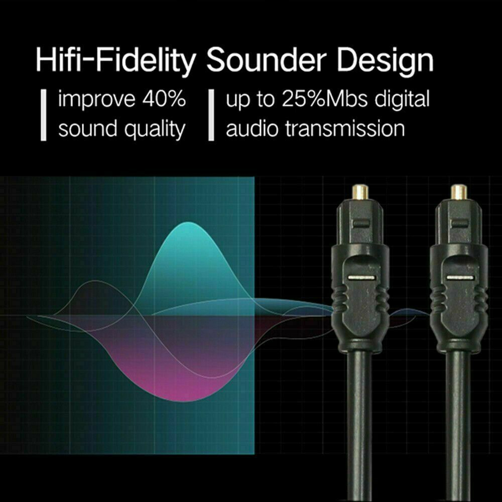 Digital Toslink Fiber Optic Cable provides the cleanest possible audio signal, even at extreme volume levels