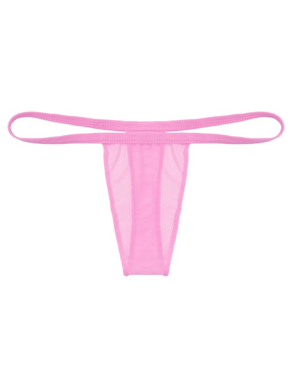Designed with elastic spaghetti waistband, T-back and buttock showing, bulge mesh pouch, which is a fancy underwear.