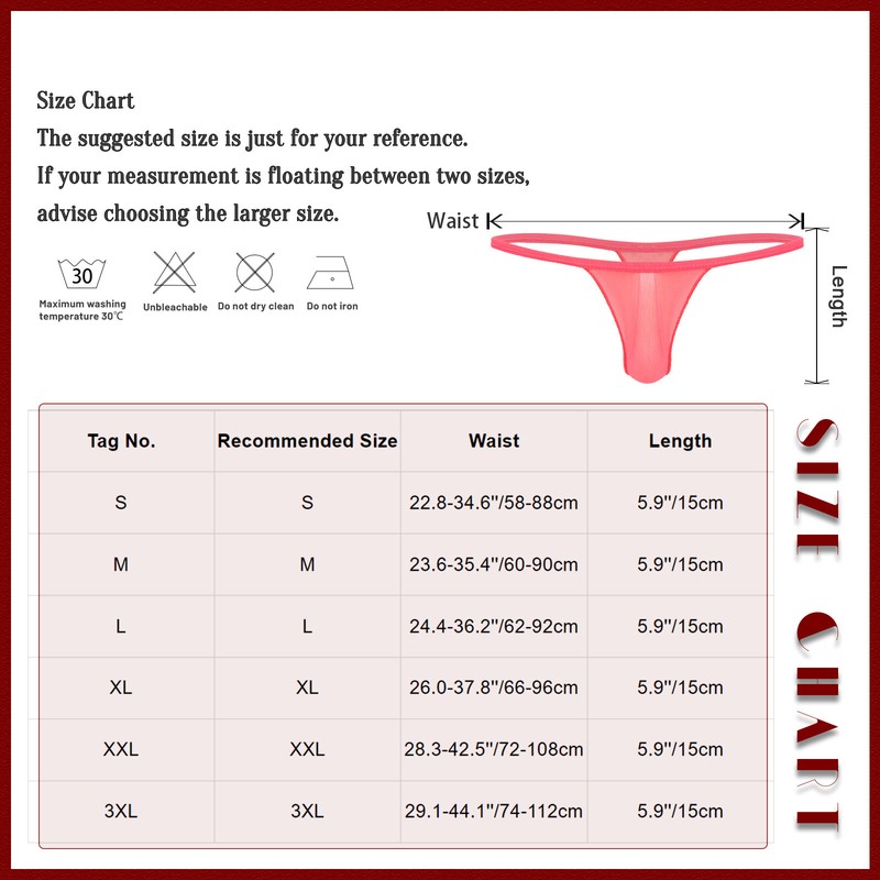 Low rise thong for men, designed with elastic waistband, can be stretched to a wider range of waistline, easy to fit different body shapes.