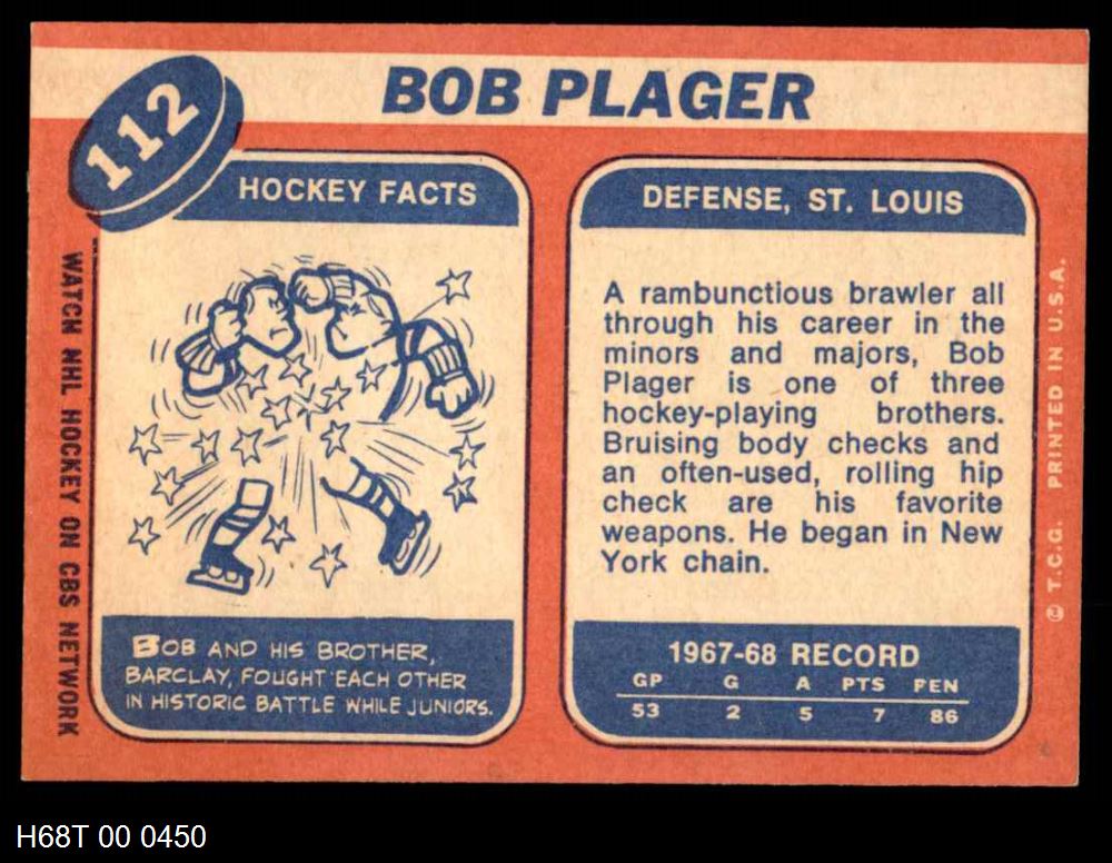 | 1968 Topps #112 Bob Plager | 5 - EX | Front | Back |