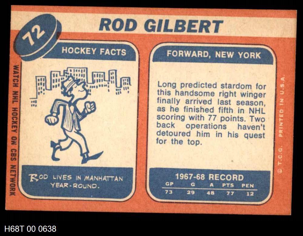 | 1968 Topps #72 Rod Gilbert | 5 - EX | Front | Back |