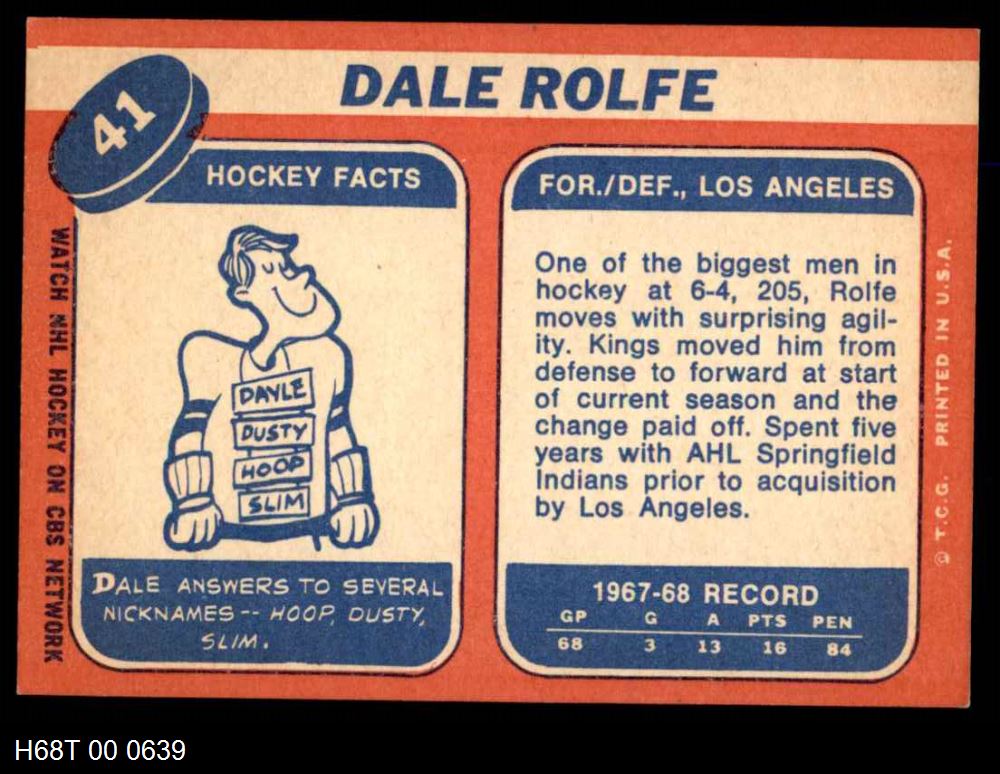 | 1968 Topps #41 Dale Rolfe | 5 - EX | Front | Back |