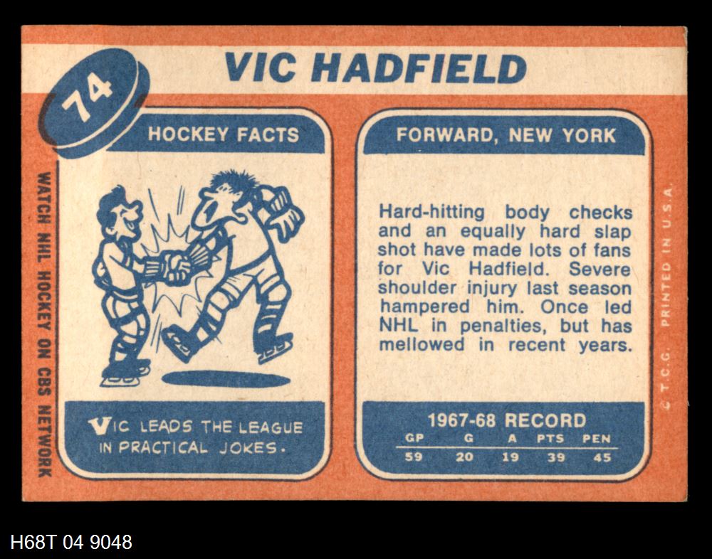 | 1968 Topps #74 Vic Hadfield | 5 - EX | Front | Back |