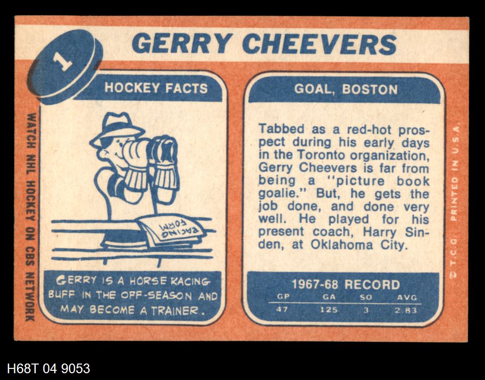 | 1968 Topps #1 Gerry Cheevers | 5 - EX | Front | Back |