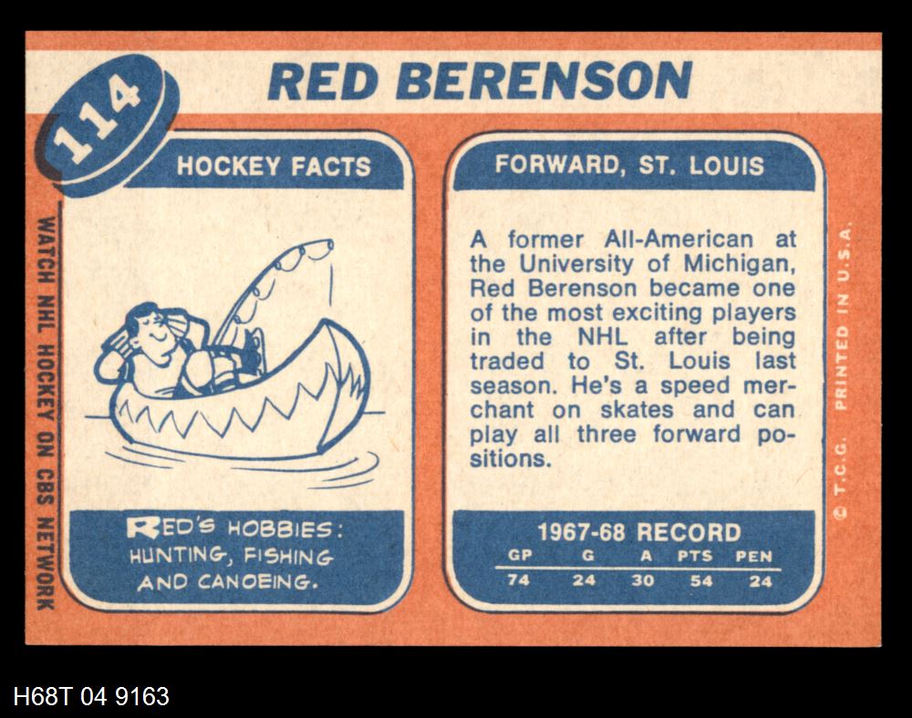 | 1968 Topps #114 Red Berenson | 5 - EX | Front | Back |