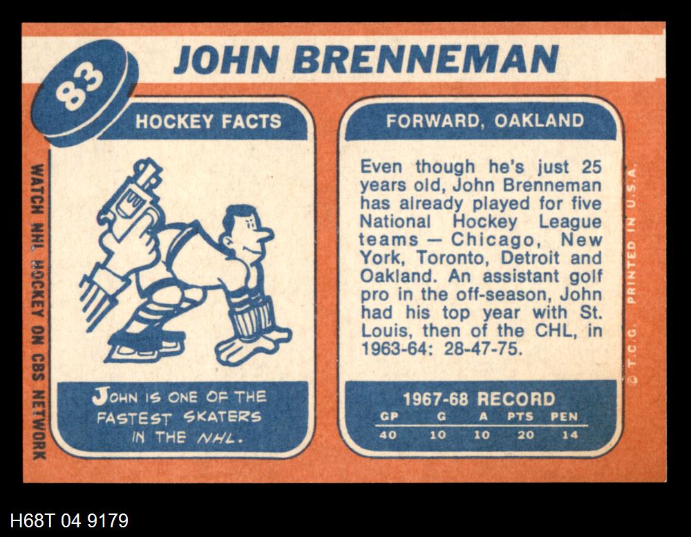 | 1968 Topps #83 John Brenneman | 6 - EX/MT | Front | Back |