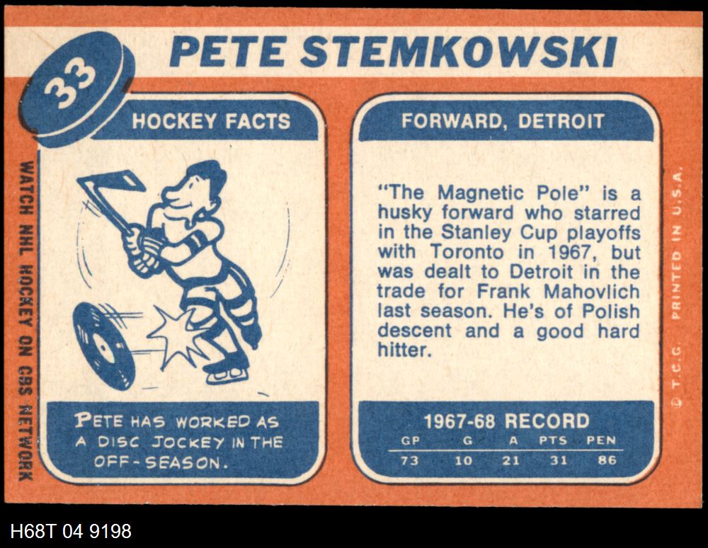 | 1968 Topps #33 Pete Stemkowski | 5 - EX | Front | Back |