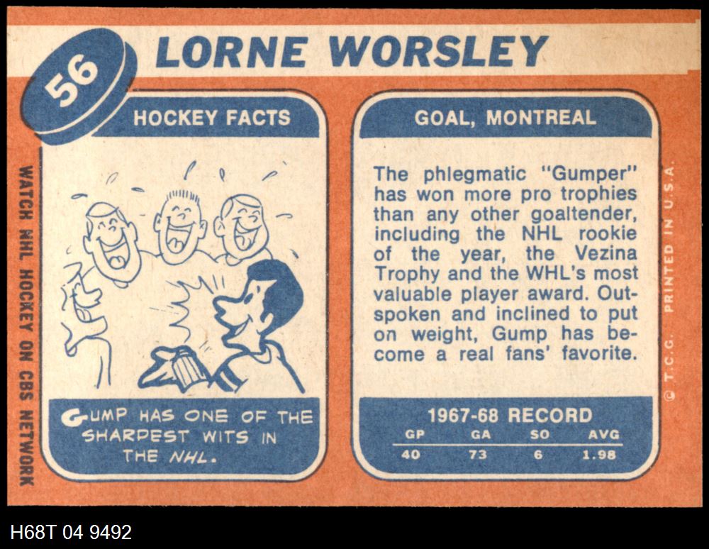 | 1968 Topps #56 Gump Worsley | 5 - EX | Front | Back |