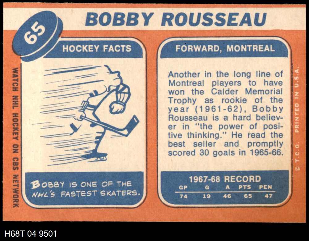 | 1968 Topps #65 Bobby Rousseau | 6 - EX/MT | Front | Back |