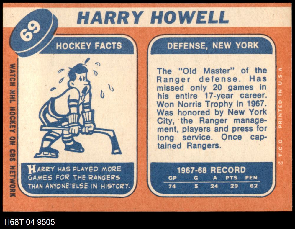 | 1968 Topps #69 Harry Howell | 5 - EX | Front | Back |