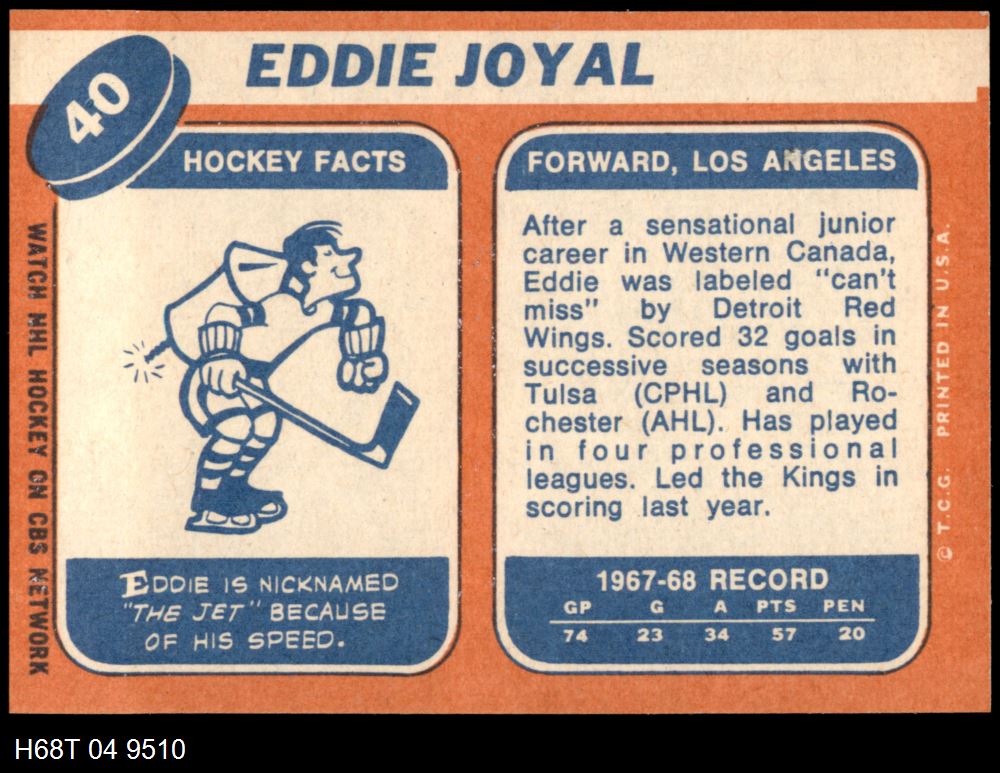 | 1968 Topps #40 Eddie Joyal | 5 - EX | Front | Back |