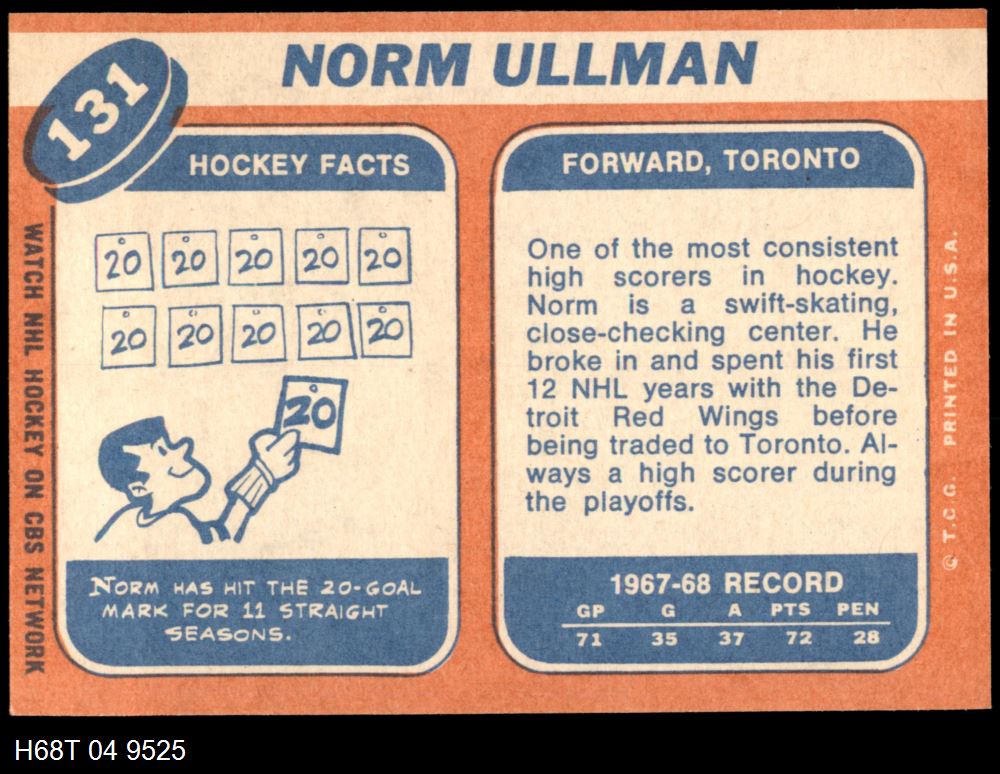 | 1968 Topps #131 Norm Ullman | 6 - EX/MT | Front | Back |
