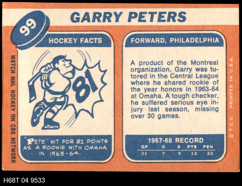 | 1968 Topps #99 Garry Peters | 5 - EX | Front | Back |
