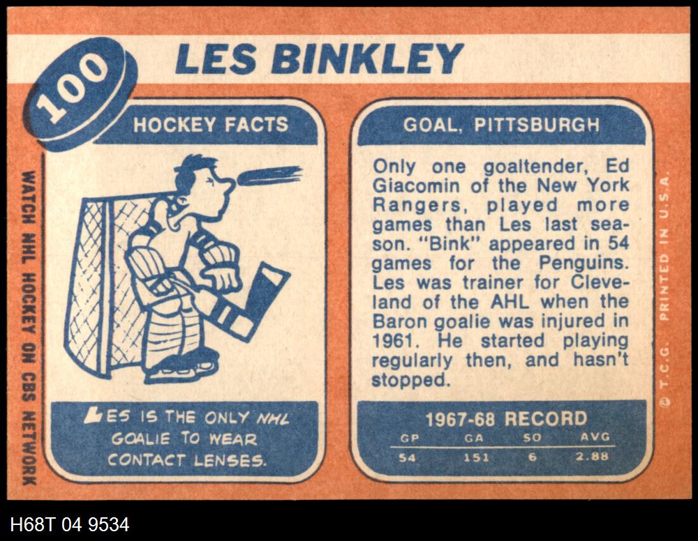 | 1968 Topps #100 Les Binkley | 7 - NM | Front | Back |