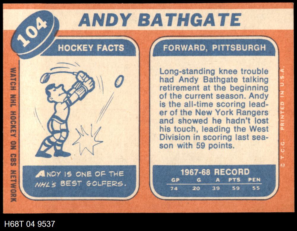 | 1968 Topps #104 Andy Bathgate | 6 - EX/MT | Front | Back |