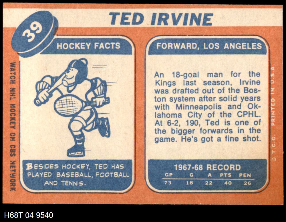 | 1968 Topps #39 Ted Irvine | 5 - EX | Front | Back |
