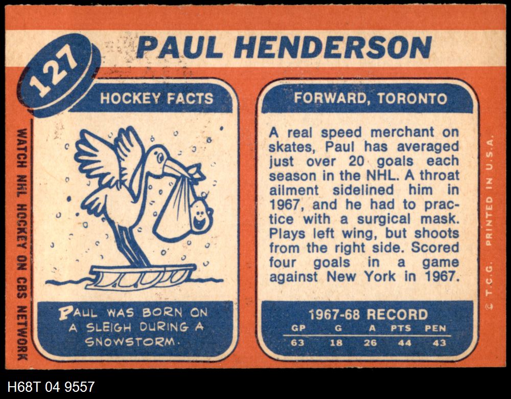 | 1968 Topps #127 Paul Henderson | 5 - EX | Front | Back |