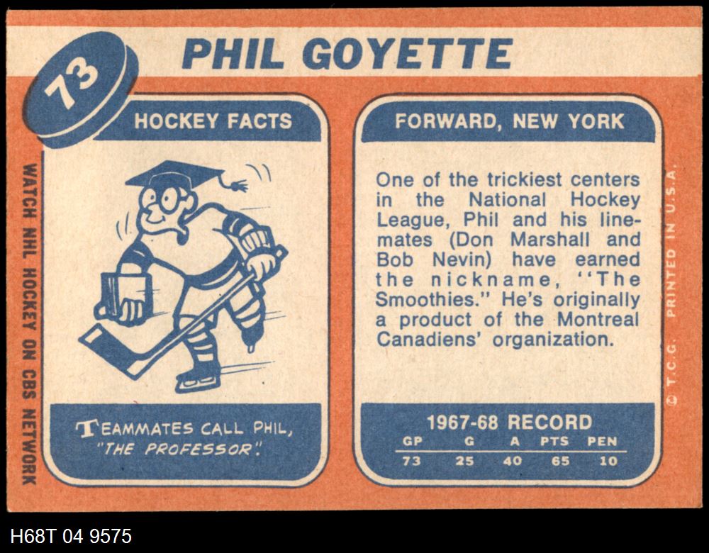 | 1968 Topps #73 Phil Goyette | 6 - EX/MT | Front | Back |