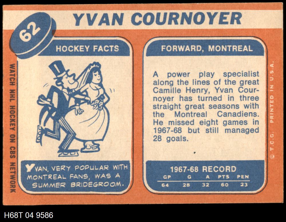 | 1968 Topps #62 Yvan Cournoyer | 4 - VG/EX | Front | Back |