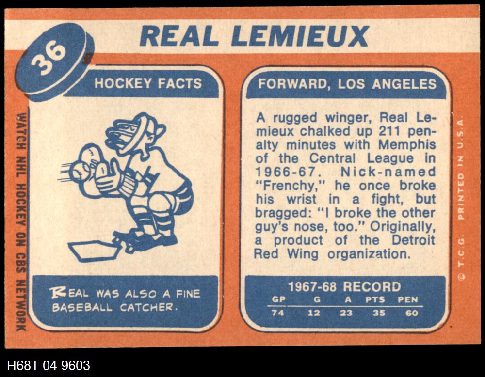 | 1968 Topps #36 Real Lemieux | 6 - EX/MT | Front | Back |