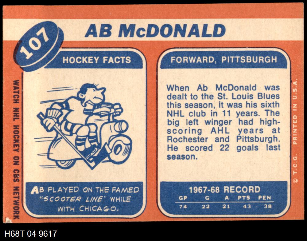 | 1968 Topps #107 Ab McDonald | 5 - EX | Front | Back |