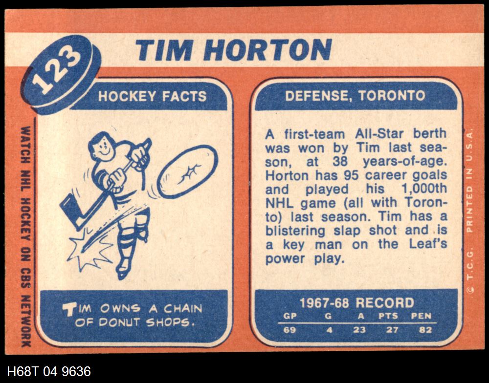 | 1968 Topps #123 Tim Horton | 6 - EX/MT | Front | Back |