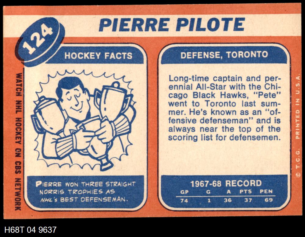 | 1968 Topps #124 Pierre Pilote | 4 - VG/EX | Front | Back |