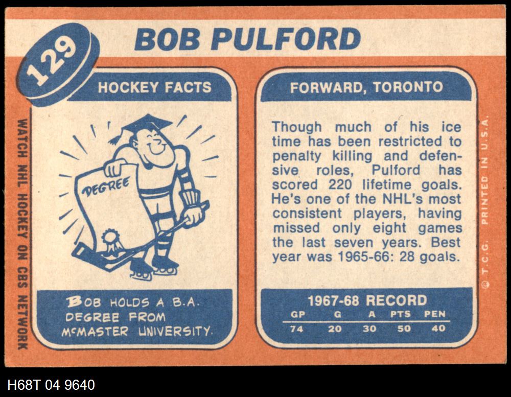 | 1968 Topps #129 Bob Pulford | 5 - EX | Front | Back |