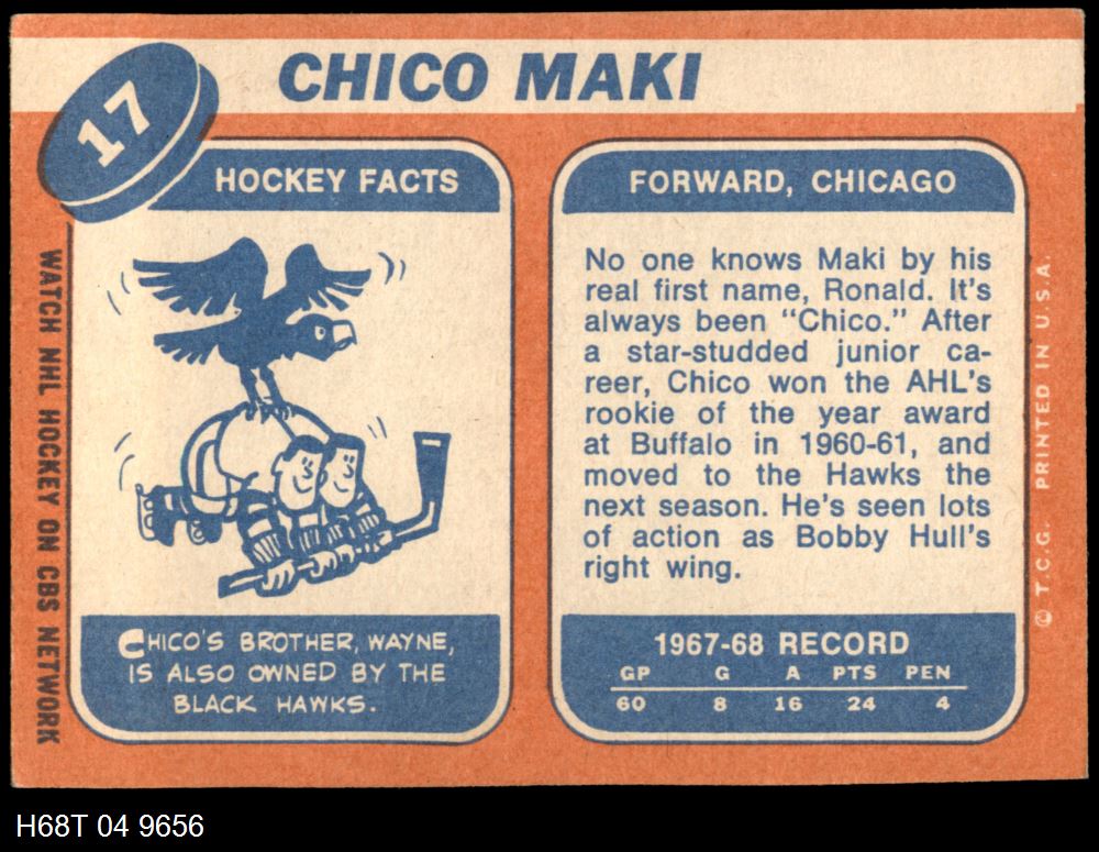 | 1968 Topps #17 Chico Maki | 4 - VG/EX | Front | Back |