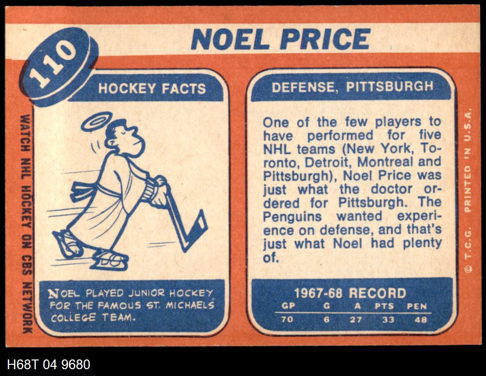 | 1968 Topps #110 Noel Price | 6 - EX/MT | Front | Back |