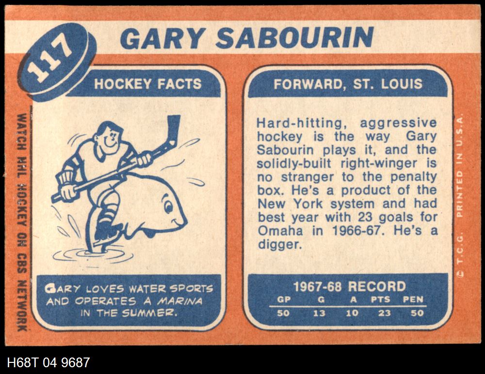 | 1968 Topps #117 Gary Sabourin | 6 - EX/MT | Front | Back |